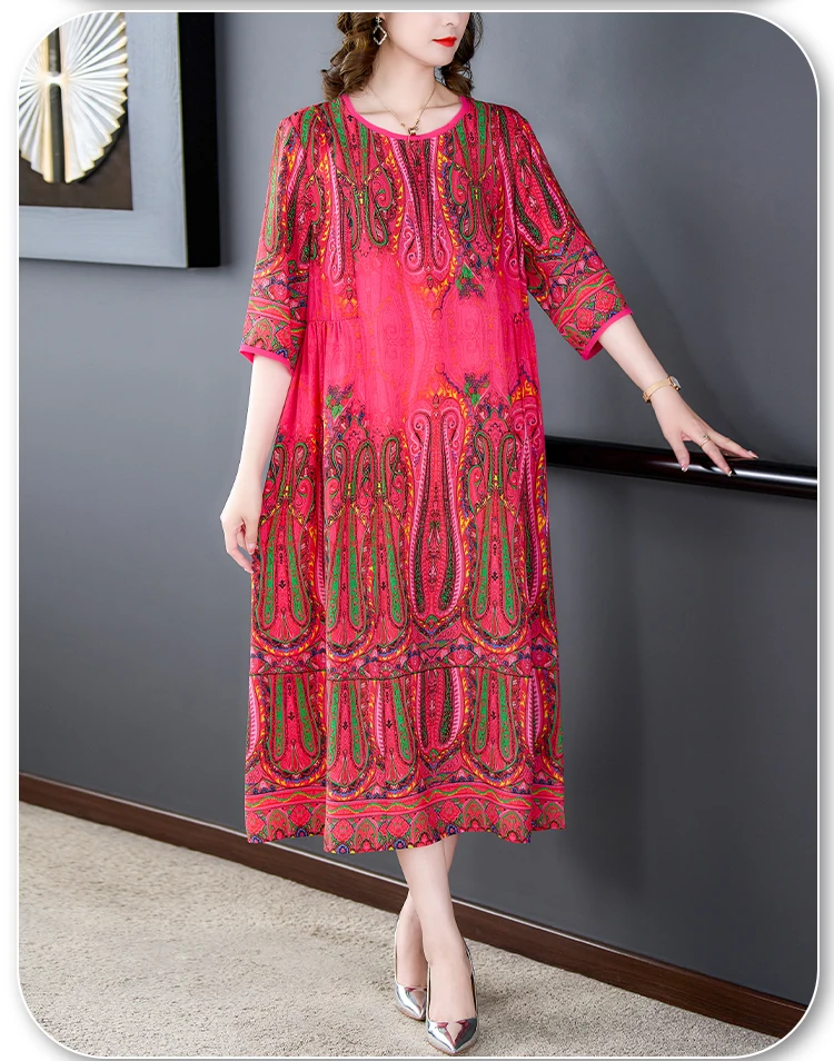 Loose Casual Red Print Chic Beach Maxi Dress Spring Summer Vintage Silk Midi Evening Dress Elegant Women Bodycon Party Robe